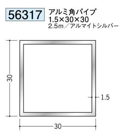 アルミ製角パイプアルミ角パイプ1.5×30×30 アルマイトシルバー 長さ2.5m創建