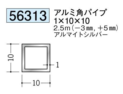 アルミ製角パイプ アルミ角パイプ1×10×10 アルマイトシルバー 長さ2.5m創建