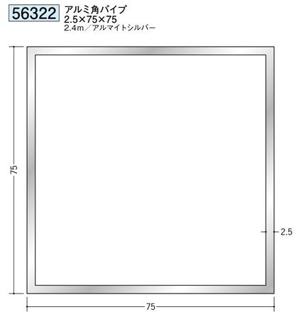アルミ製角パイプアルミ角パイプ2.5×75×75 アルマイトシルバー 長さ2.4m創建
