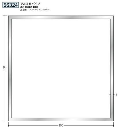 アルミ製角パイプアルミ角パイプ3×100×100 アルマイトシルバー 長さ2.5m