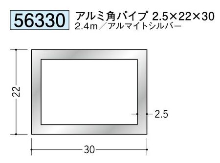 アルミ製角パイプアルミ角パイプ2.5×22×30 アルマイトシルバー 長さ2.4m創建