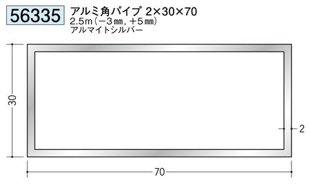 アルミ製角パイプアルミ角パイプ2×30×70 アルマイトシルバー 長さ2.5m