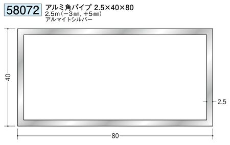 アルミ製角パイプアルミ角パイプ2.5×40×80 アルマイトシルバー 長さ2.5m創建