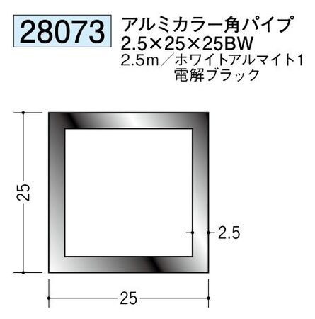 アルミ製角パイプアルミカラー角パイプ2.5×25×25BW カラー:2色 長さ2.5m