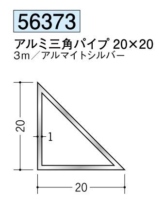 アルミ製三角パイプ アルミ三角パイプ 20×20 アルマイトシルバー 長さ3m