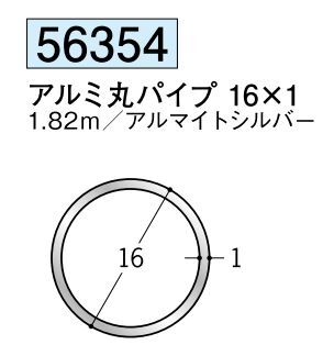 アルミ製丸パイプ アルミ丸パイプ 16×1 アルマイトシルバー 長さ1.82m創建