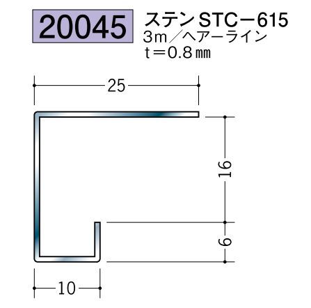 ステンレス製コ型見切縁 ステンSTC-615 ヘアーライン 長さ3m