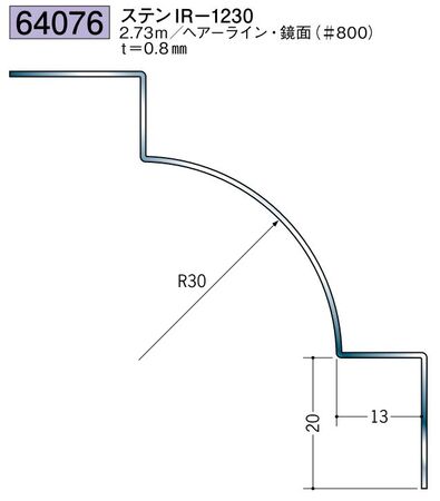 ステンレス製入隅ジョイナー ステンIR-1230 ヘアーライン/鏡面(#800) 長さ2.73m価格: 16,410円 (税別) 〜