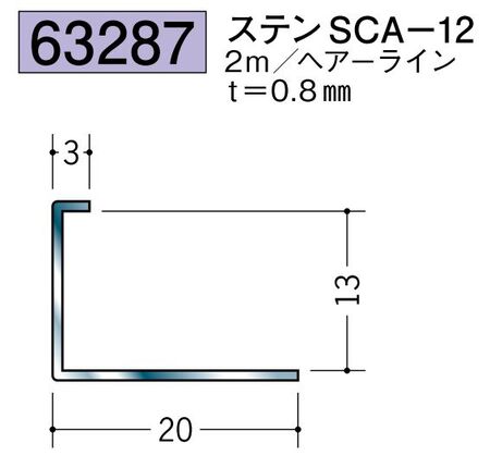 ステンレス製コ型ジョイナー ステンSCA-12 ヘアーライン 長さ2m創建