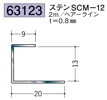 ステンレス製コ型ジョイナー ステンSCM-12 ヘアーライン 長さ2m創建