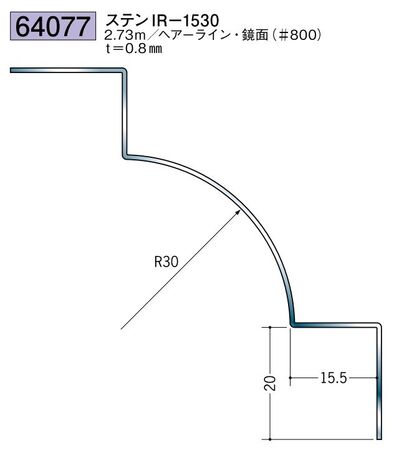 ステンレス製入隅ジョイナー ステンIR-1530 ヘアーライン/鏡面(#800) 長さ2.73m価格: 20,510円 (税別) 〜