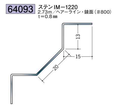 ステンレス製入隅ジョイナー ステンIM-1220 ヘアーライン/鏡面(#800) 長さ2.73m価格: 10,670円 (税別) 〜