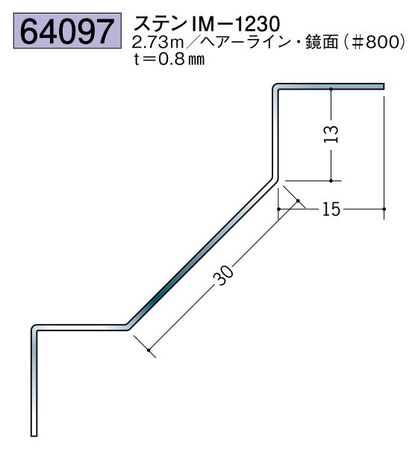 ステンレス製入隅ジョイナー ステンIM-1230 ヘアーライン/鏡面(#800) 長さ2.73m価格: 11,480円 (税別) 〜