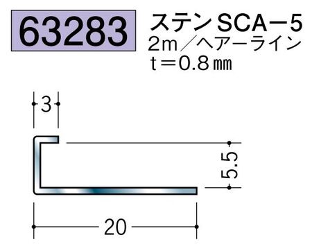 ステンレス製コ型ジョイナー ステンSCA-5 ヘアーライン 長さ2m創建
