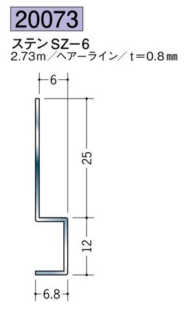 ステンレス製腰掛見切 ステンSZ-6 ヘアーライン 長さ2.73m創建