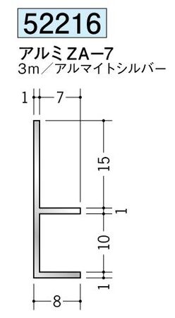 アルミ 腰壁見切 アルミZA-7 アルマイトシルバー 長さ3m