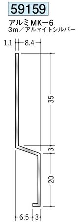 アルミ 腰壁見切 アルミMK-6 アルマイトシルバー 長さ3m