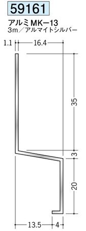 アルミ 腰壁見切 アルミMK-13 アルマイトシルバー 長さ3m