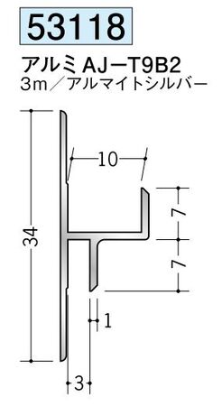 アルミ 立ち上げ見切 アルミAJ-T9B2 アルマイトシルバー 長さ3m