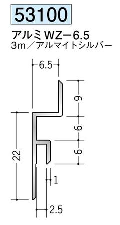 アルミ 立ち上げ見切 アルミWZ-6.5 アルマイトシルバー 長さ3m