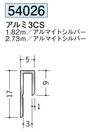アルミ 立ち上げ見切 アルミ3CS アルマイトシルバー 長さ1.82m/2.73m・3CS用(出隅・入隅・出隅カバー)価格: 350円 (税別) 〜