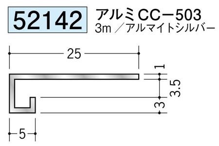 アルミ製コ型見切縁 アルミCC-503 アルマイトシルバ- 長さ3m