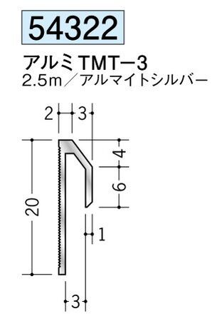 アルミ 立ち上げ見切 アルミTMT-3 アルマイトシルバー 長さ2.5m