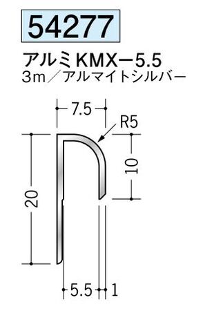 アルミ 立ち上げ見切 アルミKMX-5.5 アルマイトシルバー 長さ3m