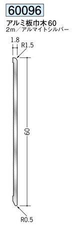 アルミ製巾木 アルミ板巾木60 アルマイトシルバー 長さ2m・役物(アルミ):直角出隅/直角入隅(300+300mm)価格: 1,570円 (税別) 〜